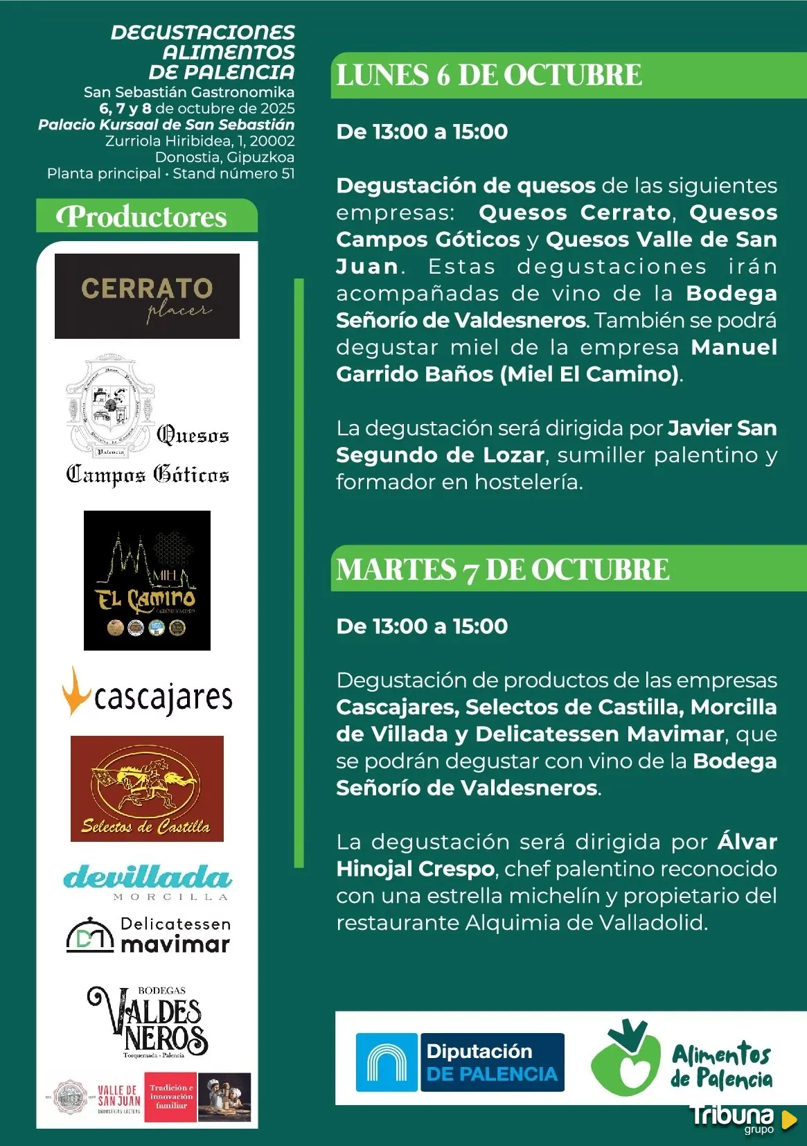 El programa incluye una cata maridaje de vino y quesos dirigida por el sumiller palentino Javier San Segundo y un showcooking del chef Álvar Hinojal Crespo, estrella Michelin en el restaurante Alquimia de Valladolid.